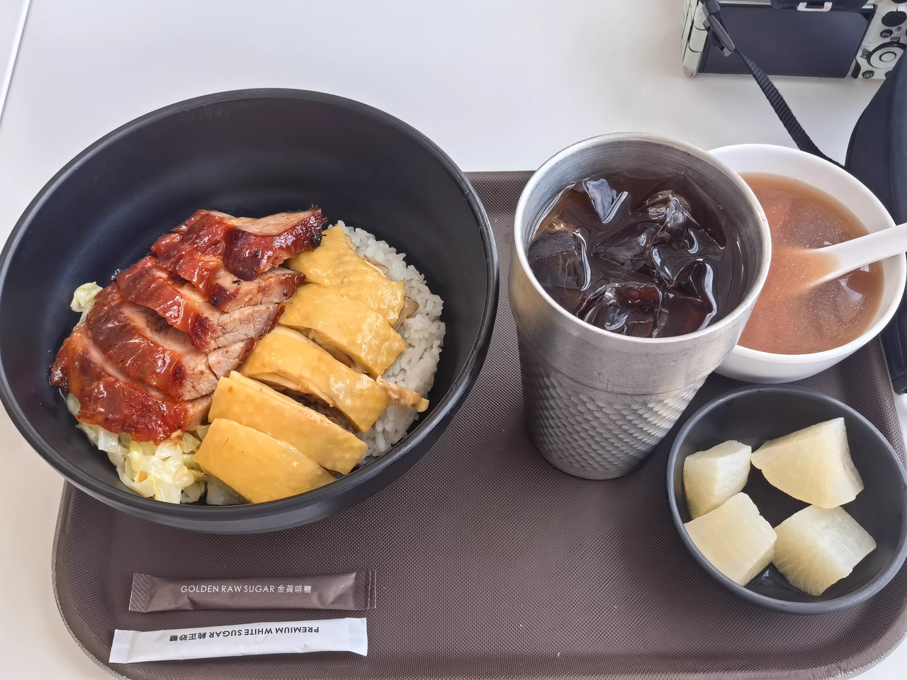 • 在香港机场肚子饿饿,点了一个叉烧鸡饭,做的真的超级无敌好吃